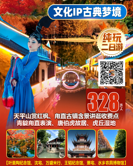 天平山赏红枫、甪直古镇虎丘湿地纯玩二日游